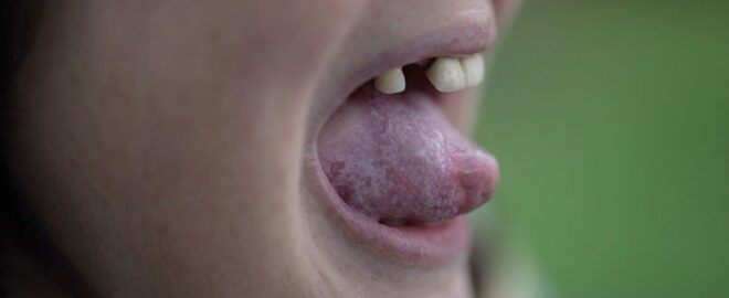 - a red or white patch inside the mouth